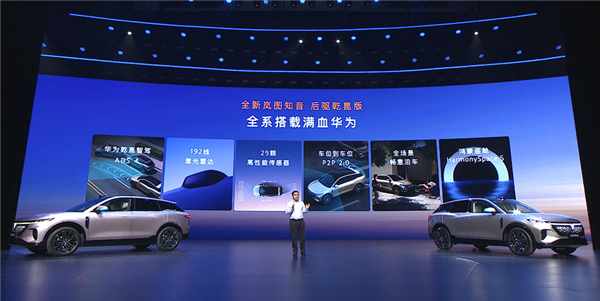 内饰变化非常大,换装全新的三辐式多功能方向盘,采用更简洁的滑轮按键,升级搭载10.25英寸的全液晶仪表,配AR-HUD抬头显示系统,中控台中间配备了15.6英寸的悬浮式多媒体触控屏,内置鸿蒙座舱HarmonySpace5系统。