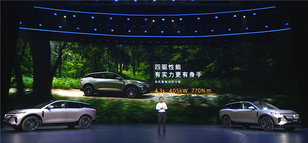 动力方面,该车提供单电机后驱和双电机四驱版本,其中后驱版最大功率230千瓦,四驱版前/后电机最大功率分别为175千瓦和230千瓦,零百加速4.3秒。
